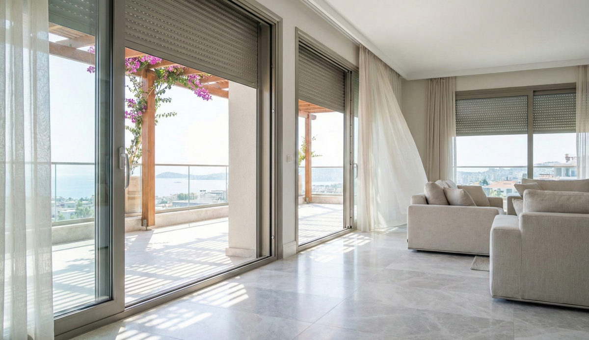 - Otomatik Dış Panjurlar: İzmir için bir lüks değil, zorunluluktur. Güneşin en dik geldiği saatlerde (11:00-16:00) panjurları indirerek ısının %80’ini dışarıda tutabilirsiniz. Akıllı ev sistemleriyle entegre edildiğinde, siz evde yokken bile panjurlar güneşe göre hareket eder.