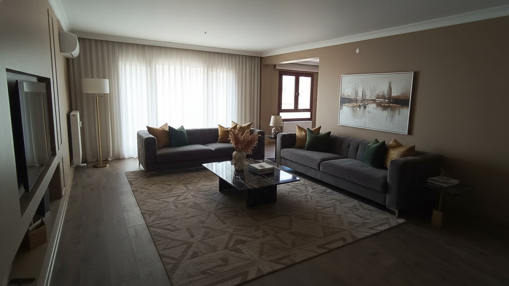 “İzmir Gaziemir’de, standart kalıpları yıkarak klasik mimari detayları modern konforla buluşturduk. Koyu gri tonların asaleti, balıksırtı zeminler ve nostaljik dokunuşlarla, karakteri yüksek ve sinematik bir yaşam alanı kurguladık.”