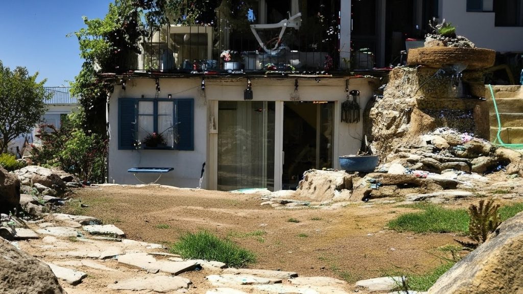 “Bodrum Gümüşlük’te, kot farkı nedeniyle atıl kalan alanı kazı çalışmalarıyla bahçeye dönüştürdük. Şantiyeden çıkan doğal atık malzemeleri sanata çevirerek, ‘İleri Dönüşüm’ (Upcycling) felsefesiyle mekana özgün bir ruh kattık.”